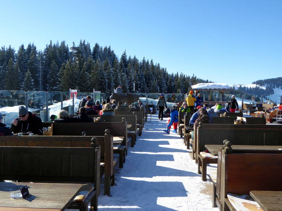 Rustic hut with bar and sun terrace. In the afternoon, it’s time for après-ski.