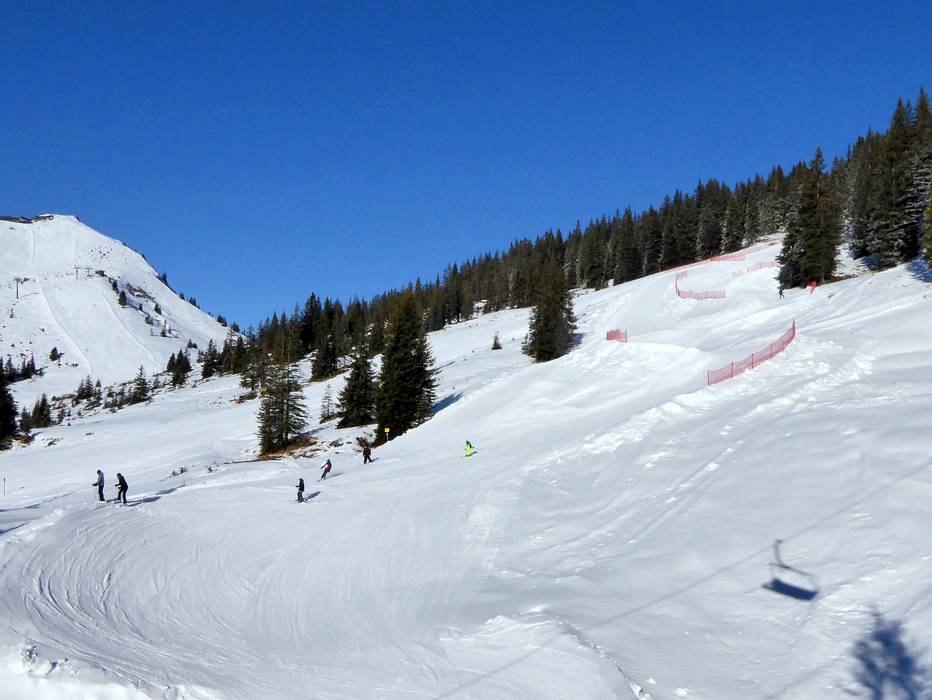 Valley run 40 (blue) to Söll, lower section of the Kandlerabfahrt - many freeride/deep snow areas