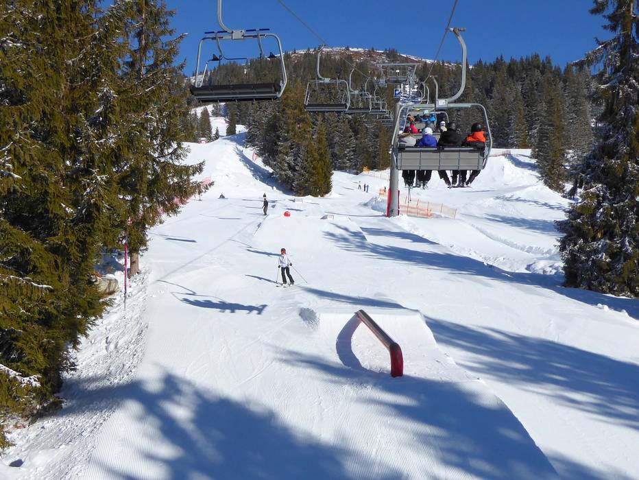 The Hans im Glück ski course is located below the 10-seater Hans im Glück gondola in Hochsöll. During the day and night skiing, the park offers plenty of fun for beginners. Two lines with exciting jumps, boxes, curves, tunnels, and overpasses delight both young and old.
