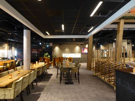The gastropub and sports bar offer a relaxed atmosphere with a view of the ski hall. A good selection of food and drinks is served.
