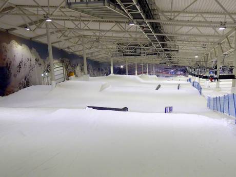 The four-seater chairlift provides perfect access to the snow park in the SNØ indoor ski hall. Variety and fun are guaranteed in the fun park. At the end, there is also a small boardercross. The quality here is very high, as the park is freshly groomed every day.