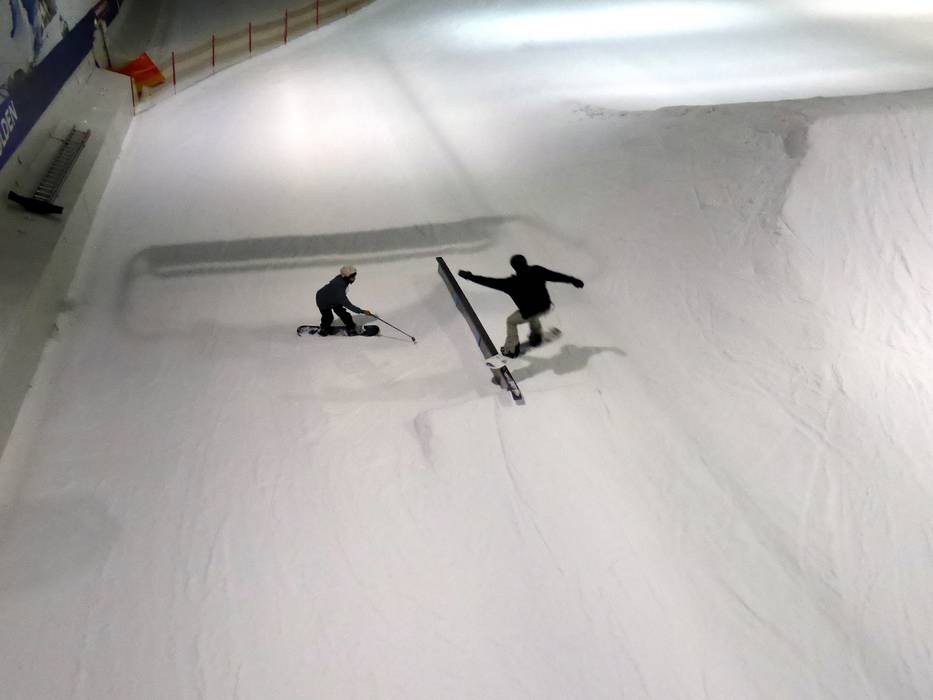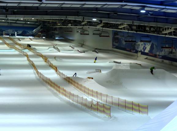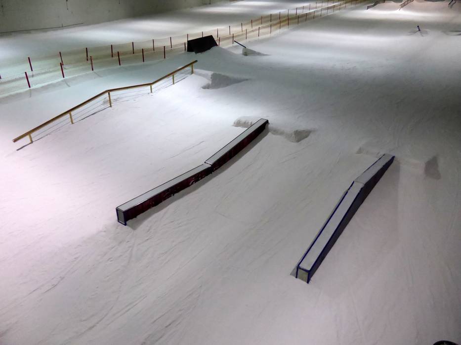 The indoor ski hall SnowWorld Bispingen offers a beautiful snow park with many obstacles and jumps all year round.
