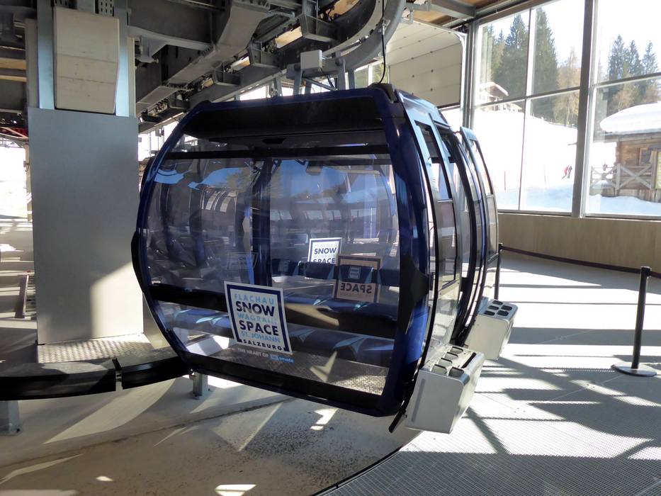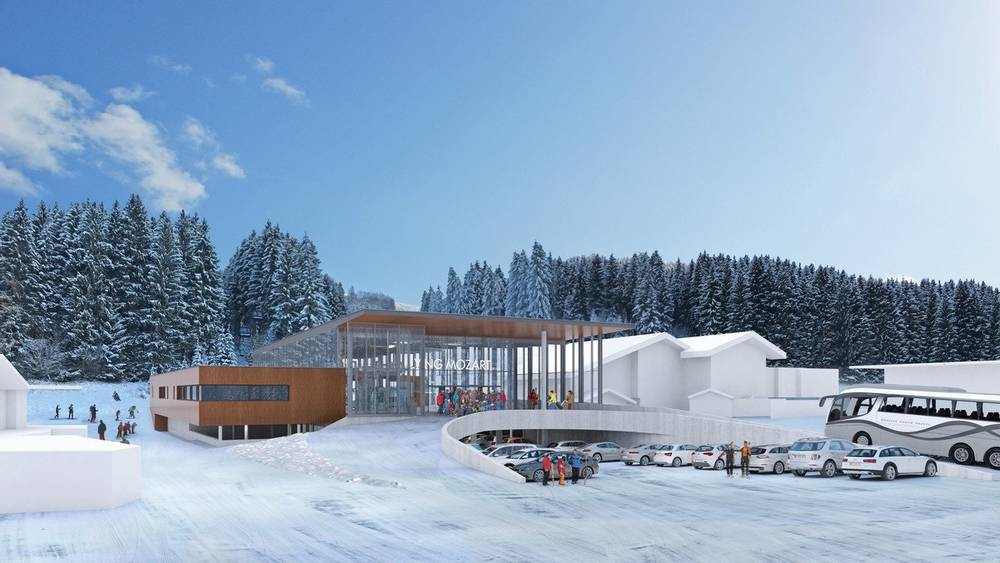 An obvious improvement of the new lift system is the much more comfortable 10-seater cabins with seats, as in the old lift you had to stand. The new gondolas are equipped with comfortable individual seats, seat heating, and generous panoramic glazing. The stations of Flying Mozart 1 are also being completely redesigned. With the new construction, there is an underground car park beneath the valley station in Wagrain. The mid-station, which connects Flying Mozart 1 and Flying Mozart 2, is being lowered. This means the station is visually better integrated into the mountain and, at the same time, the transfer to and from the G-LINK Wagrain is more convenient.