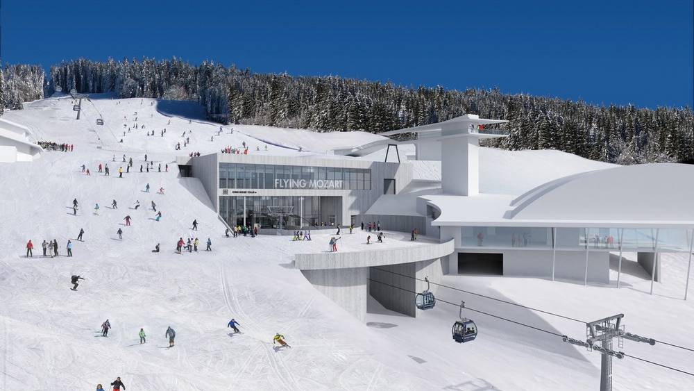 The most noticeable improvement of the lift itself is the much more comfortable 10-seater gondolas with seats, as the predecessor had cabins with standing room only. In addition, the new cabins are equipped with comfortable individual seats with seat heating and generous panoramic glazing. The stations of Flying Mozart 2 are also new. The mid-station, in particular, which connects to Flying Mozart 1 and to G-LINK Wagrain, is being extensively redesigned. It will be set several meters deeper into the mountain, so that it visually disappears into the mountain on one hand, and on the other hand, the transfer to and from G-LINK Wagrain is conveniently possible. The mountain station of Flying Mozart 2 will be moved slightly higher, so that it is at the same elevation as the mountain station of Starjet 3, thus providing access to a larger range of slopes.