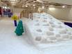 The Kiddies Kids Klup is located right at the entrance to the ski hall. There is a climbing mountain, little houses, a practice slope, and funny figures.