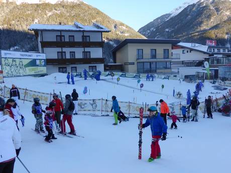 The children's area is located at the beginner ski area Innerwald, slightly above Sölden. It is easily accessible from Sölden with the free Zentrumshuttle (a short funicular railway). The well-equipped children's area is situated right next to the beginner drag lifts at Innerwald.