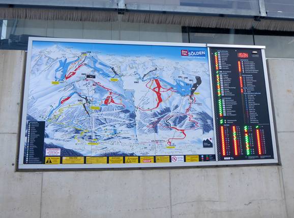 A piste guidance system developed by the Sölden mountain railways with large-format orientation boards and realistic panoramic maps makes navigation in the Sölden ski area easier. The signage is exemplary and consistent. All pistes are very well signposted, and at important points in the ski area you will find up-to-date information on open lifts and pistes. Electronic information is also provided at the entrances to the individual facilities.
