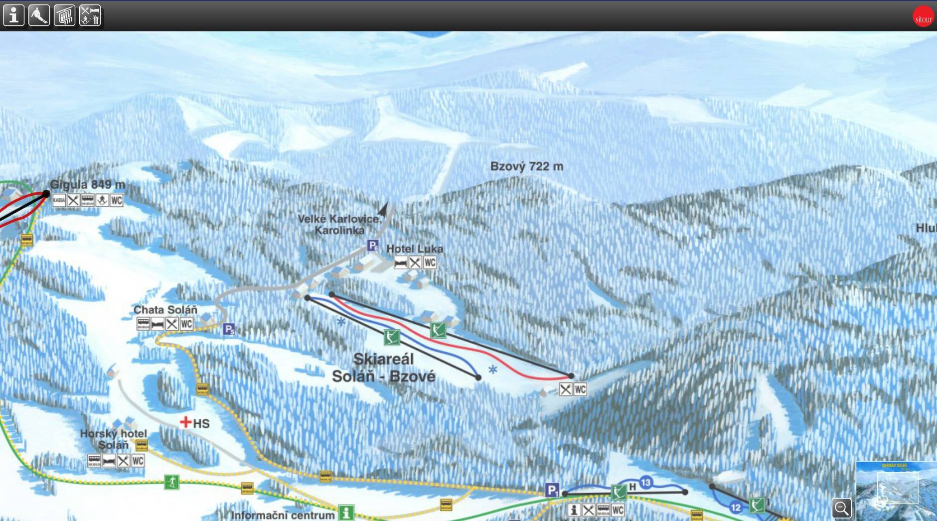 Trail map Soláň – Bzové Season ---- !!! closed temporarily/vorübergehend außer Betrieb