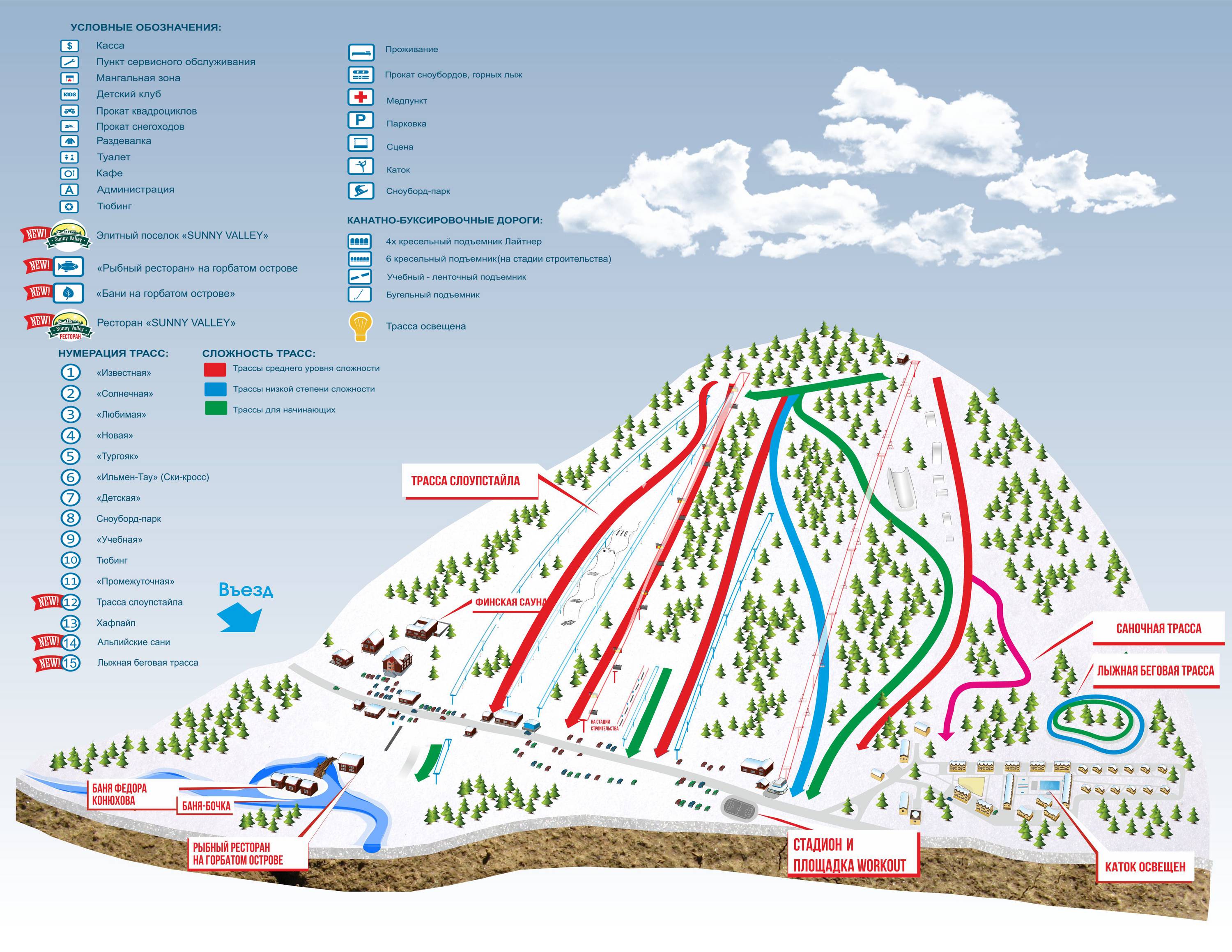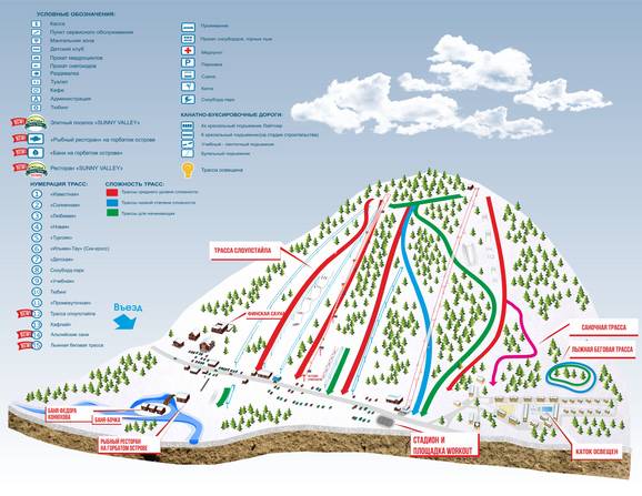 Syrostan (Сыростан) (6 km), Miass (Миасс) (13 km) Towns/villages at the ski resort