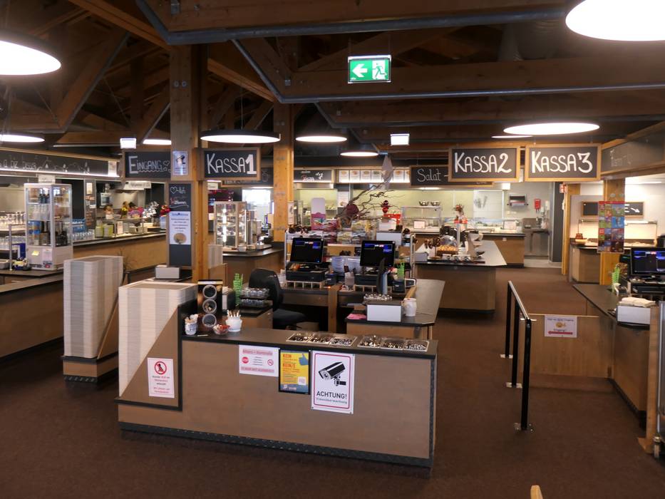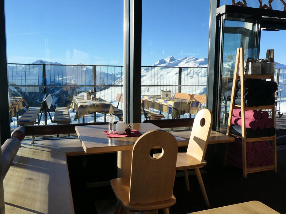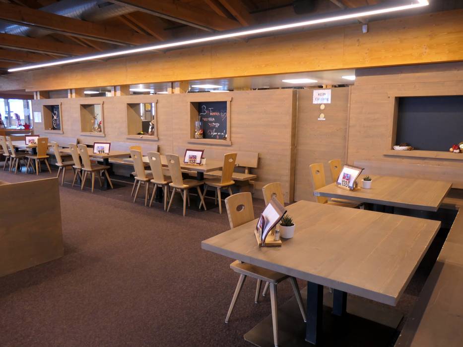 The large and beautiful self-service restaurant offers a good selection of popular lunch dishes. A rich salad buffet as well as delicious strudels and cake variations expand the menu. The spacious sun terrace invites you to linger. The ice bar ensures a great atmosphere. The mountain breakfast with advance reservation is a culinary highlight.