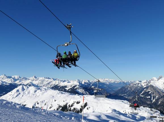 An eight-person gondola lift with a mid-station transports guests to the ski area in just a few minutes. The Sattelkopf drag lift takes you to the fast Obermuri four-seater chairlift, which provides access to the eastern part of the ski area with the two double chairlifts Obermoos and Glattingrat. The western part of the ski area features the Riedkopf four-seater chairlift and the Riedboden drag lift. In Schneemannland at the mountain station of the eight-person gondola lift, conveyor belts and a practice lift are available for beginners.