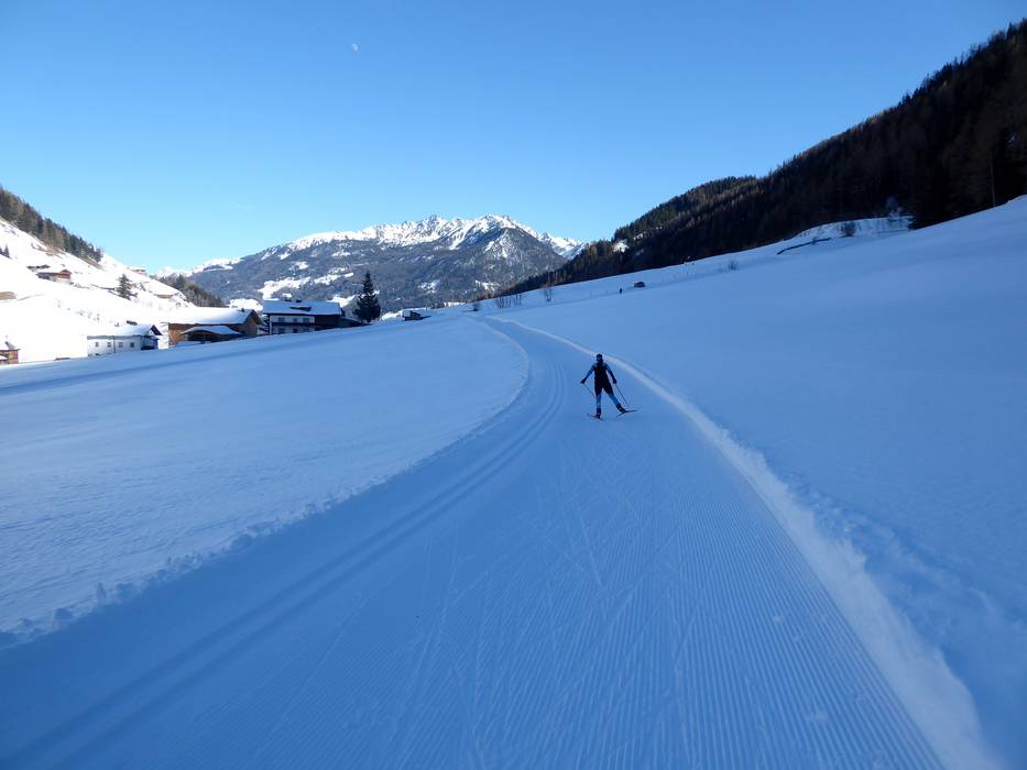 The cross-country trails in Kasern are popular not only for their magnificent mountain scenery, but also for their exceptional snow reliability at over 1,600 meters.