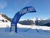 At Seenock, there is a funline combined with the snowpark. The funline is especially enjoyable for children and families. Kids love the funny figures and the snail with a tunnel. There are sounds as you pass through. The easy section of the snowpark is also ideal for children.