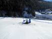 Right next to the valley station and the mountain station, there are practice areas of the ski school. Each is equipped with a conveyor belt, allowing you to practice your first turns in the snow with a ski instructor. There is also a dedicated slalom course of the ski school at the Tottomandl conveyor belt.