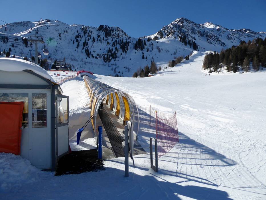 At the mountain station of the Speikboden gondola, you will find the covered Tottomandl conveyor belt with wide and easy slopes. While riding up on the conveyor belt, you can spot animal motifs in the tunnel.