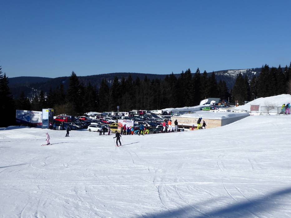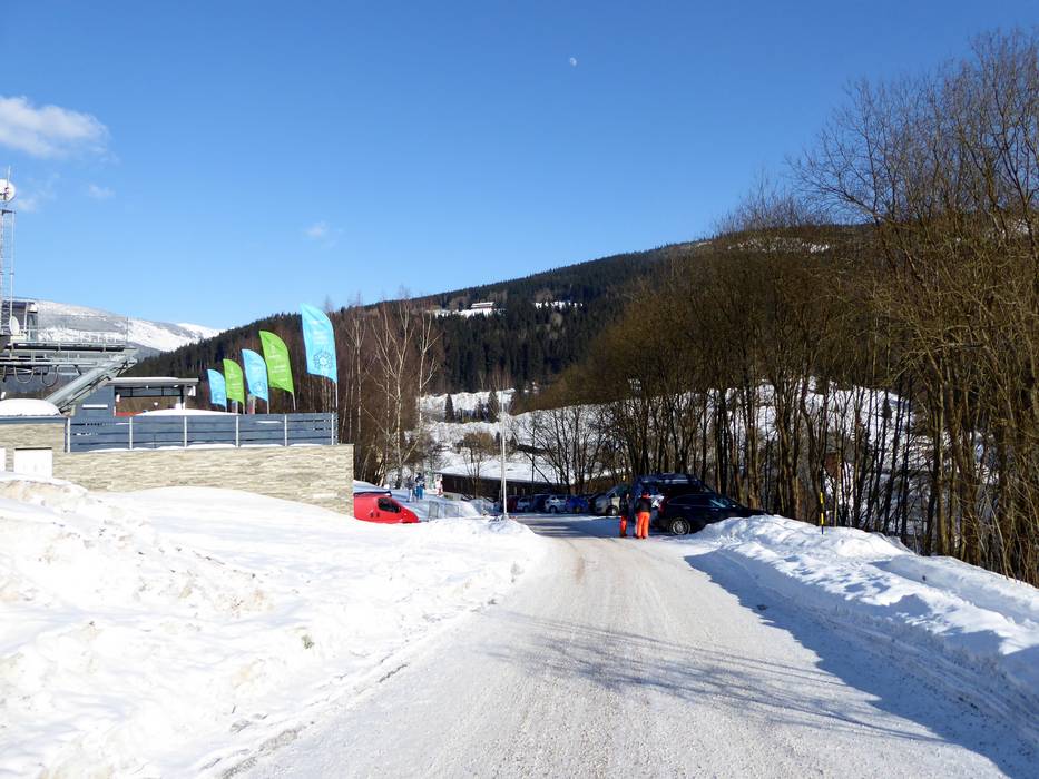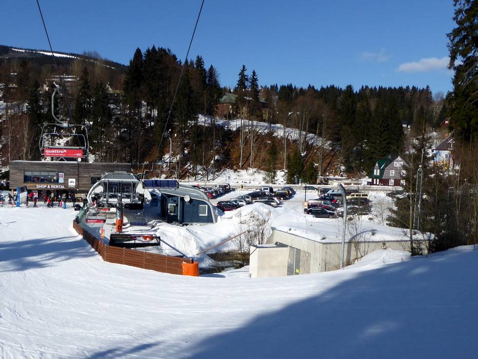 The Spindlermühle ski resort is located in the heart of the Giant Mountains in the Czech Republic. The journey there is scenically beautiful, passing through the Krkonoše National Park. The nearest motorway is about 60 km away. Free parking is available at the valley stations during winter.