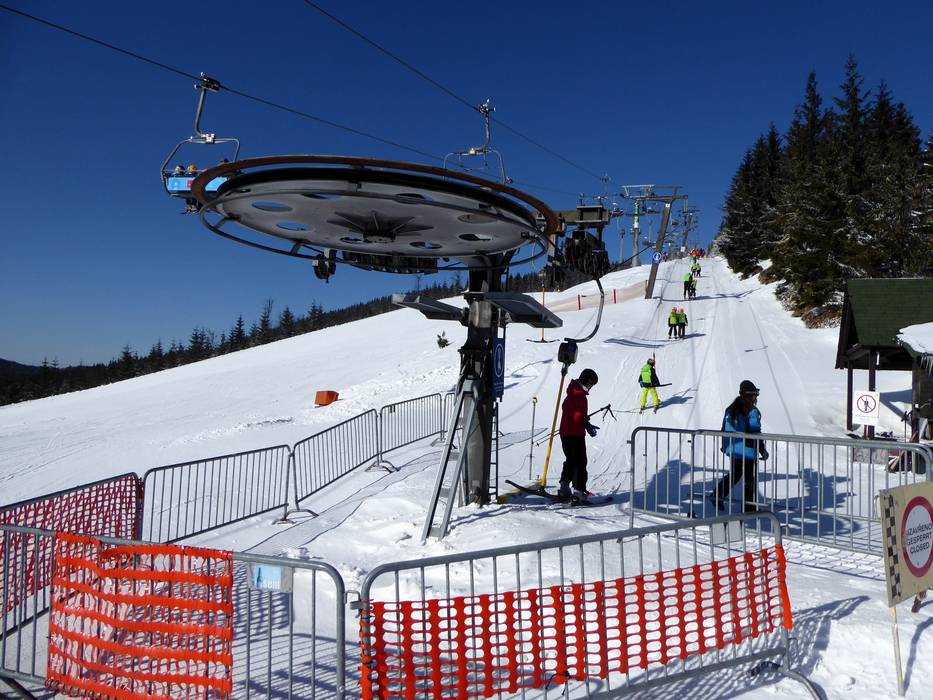 The majority of the slopes in the Spindlermühle ski area are served by fast four-seater chairlifts. A modern six-seater chairlift with heated seats and weather protection covers provides access to the slopes at Pláň. A three-seater chairlift and a double chairlift, as well as drag lifts and platter lifts, complete the range of lifts. Several conveyor belts are available for children.