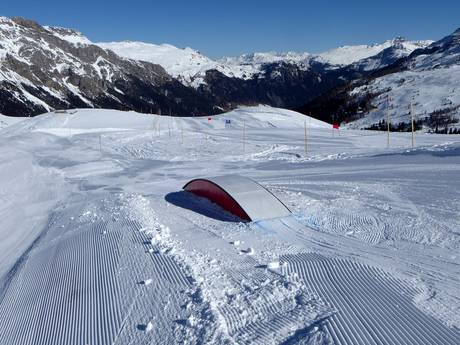 Some boxes and kickers in the beginner area are ideal for snowpark newcomers.
