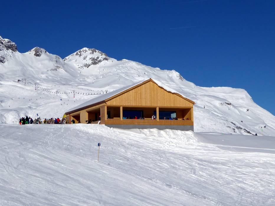 The ski hut "der wolf" in Lech am Arlberg was completely reopened for the 2016/17 season. The hut is privately run and serves only fresh and regional dishes. Everything is still homemade here. The light wood and large panoramic windows give the ski hut a luxurious atmosphere. In good weather, you can sit outside the hut in a sheltered area.