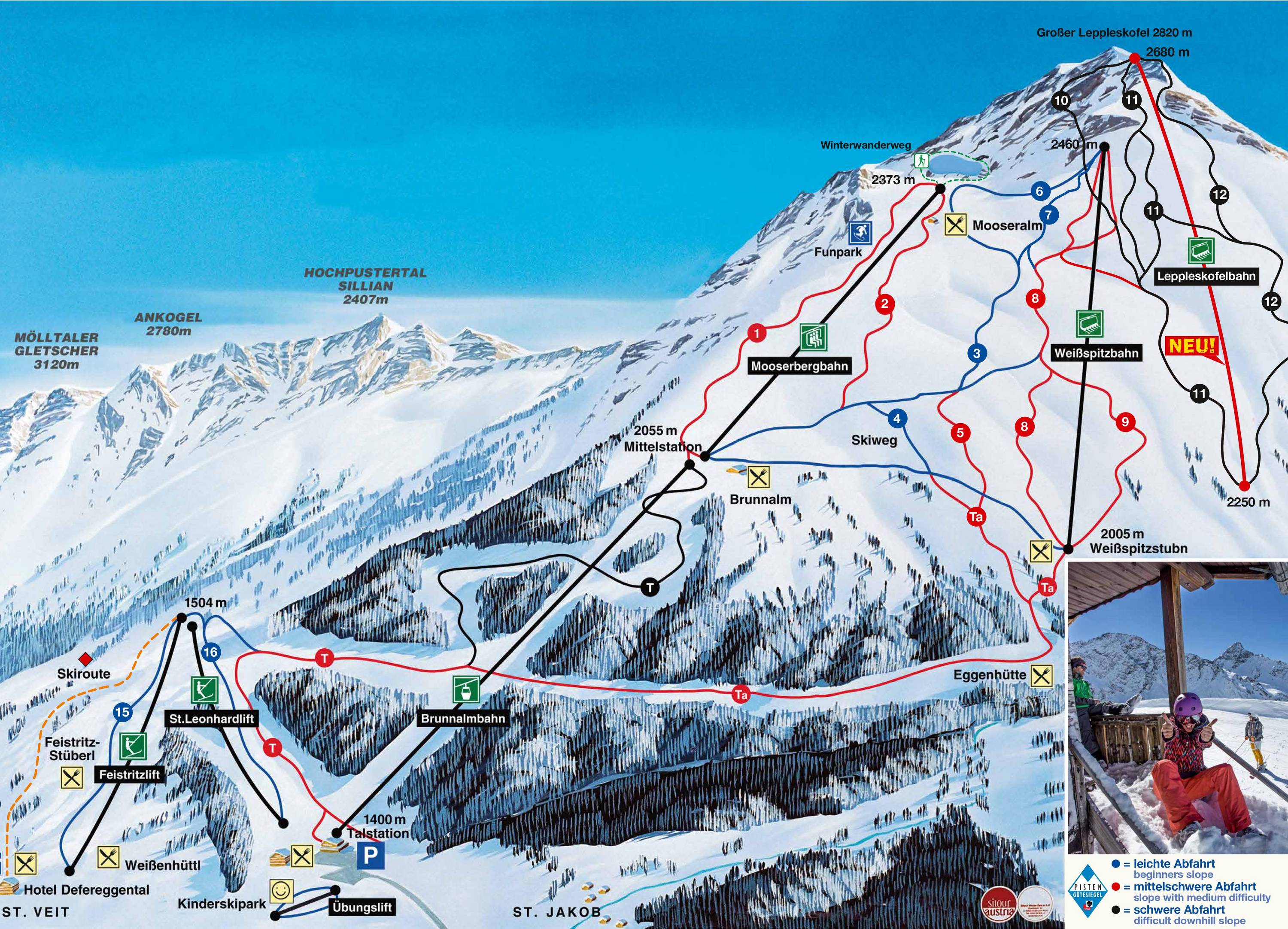 The slope map clearly and concisely displays the St. Jakob ski area, making it easy to find your way around the resort.