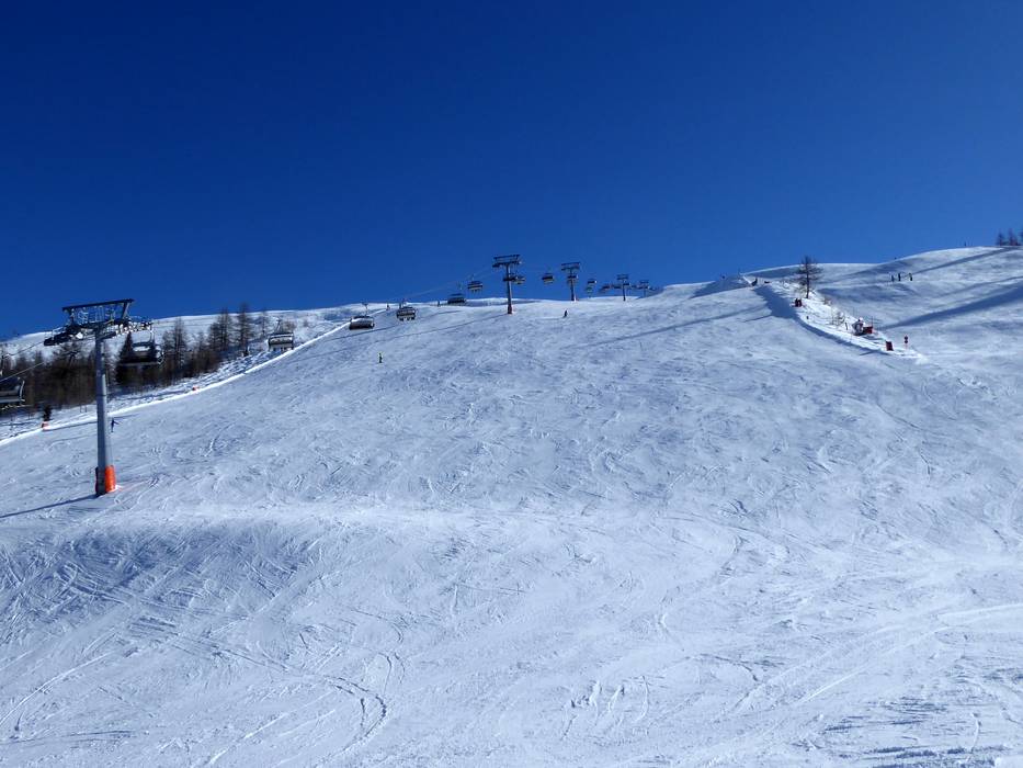 Attractive black slope from the highest point in the ski area along the 6-seater chairlift Leppleskofel