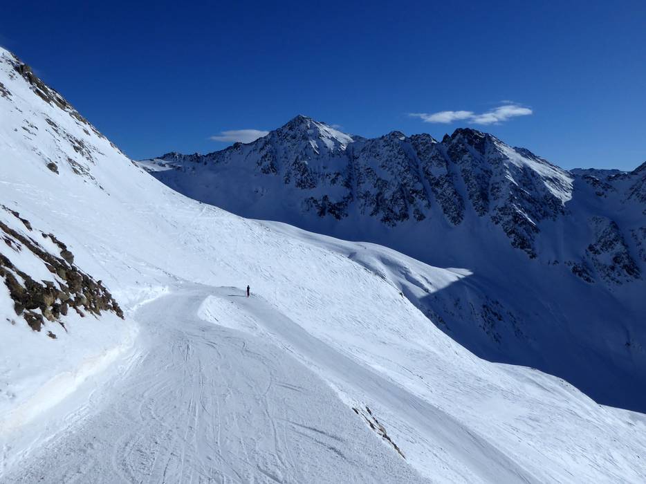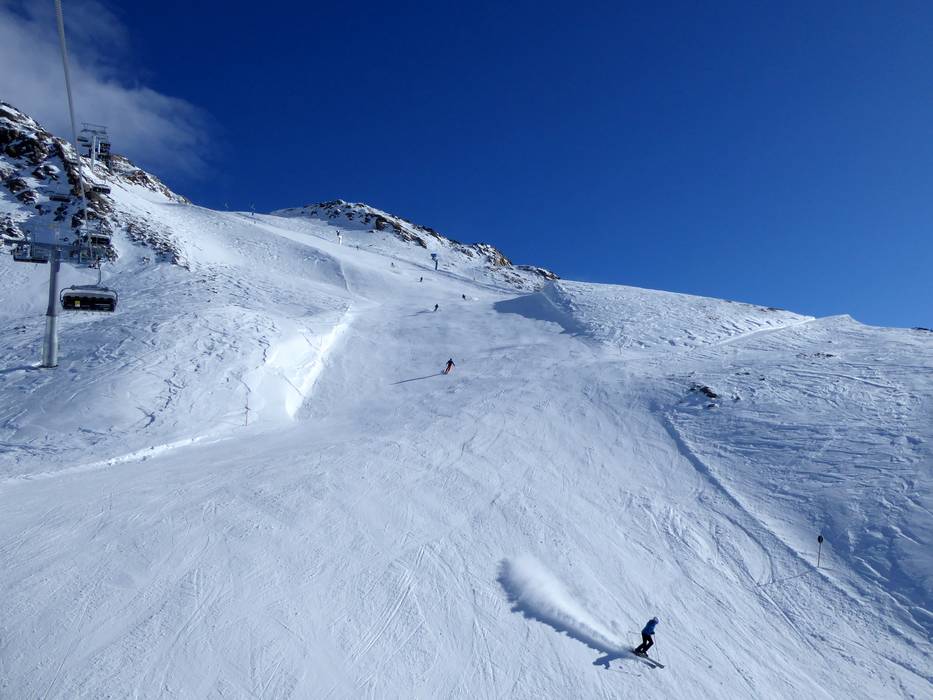 At the highest point of the ski area, near the mountain station of the Leppleskofelbahn, attractive black slopes begin. - Carving slopes at the Weißspitzbahn