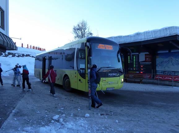 In St. Johann in Tirol there is an express train stop. From there, a ski bus takes you to the valley station in 4 minutes. In Oberndorf there is a regional train stop, which is about 500 m from the cable car. - Ski buses