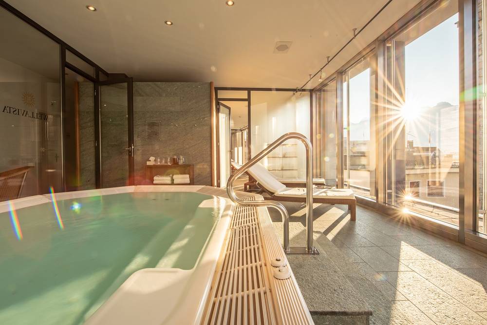 The Wellavista Rooftop SPA invites you to relax above the rooftops of St. Moritz with a sauna, steam bath, and whirlpool. The view over the lake and the mountains is unique.