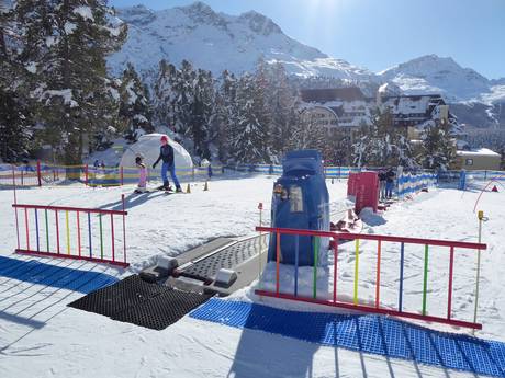 The children's area is located in Suvretta and is very well equipped with several conveyor belts. The practice area at the Suvretta drag lift is directly adjacent.