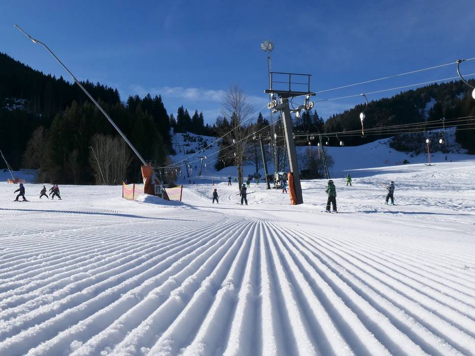The ski area at Steckenberg is located just outside Unterammergau. In the lower section, there is a large, interconnected beginner area. Intermediate slopes complement the offerings. The winter sports area also features a floodlight system, which is operated several times a week for training groups. The Steckenberg Alm at the valley station invites you to take a break and enjoy some refreshments. There is also access to the extensive cross-country trail network of the region.