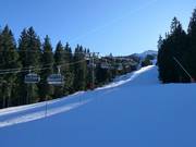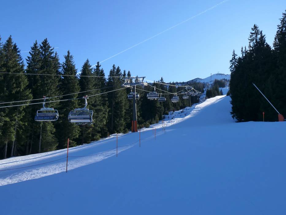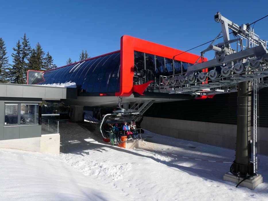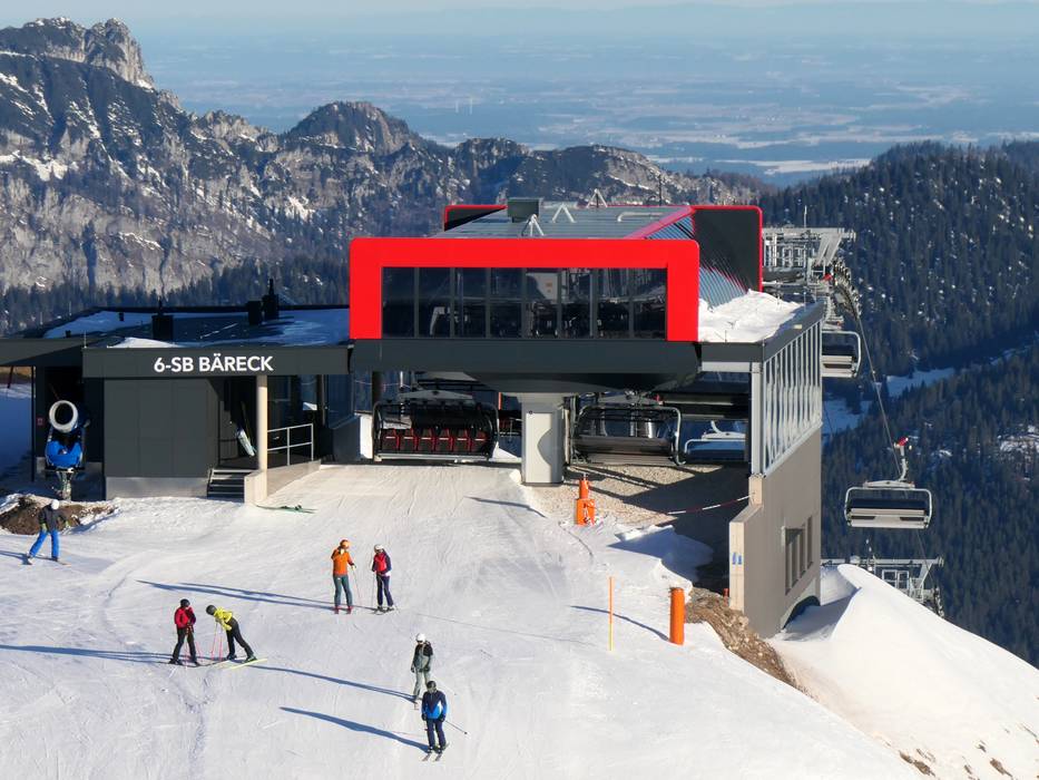 The new 6-seater chairlift Bäreck replaces the aging 4-seater chairlift Bäreck. The route remains the same. The modern 6-seater chairlift from Doppelmayr offers more comfort on the route with weather protection covers, comfortable seats, and seat heating. In addition, the new lift system provides a slightly shorter ride time and a slightly increased transport capacity.