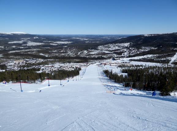 View from Stötentorget over the ski area Wide and easy slopes dominate the Stöten ski… View over the Stöten ski area