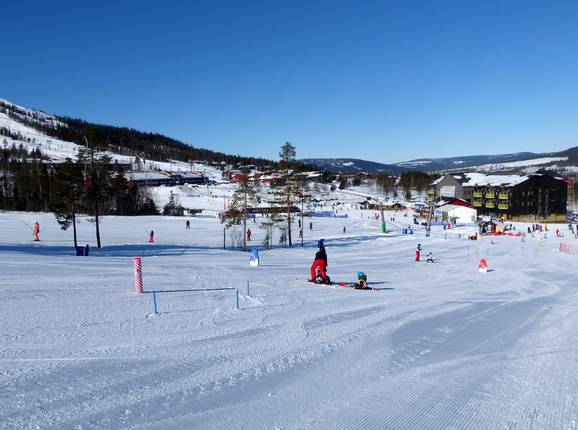 The children's area offers its own conveyor belt and a lovely practice slope with obstacles and fun figures. The platter lift Vargliften 1 serves the easy slope.