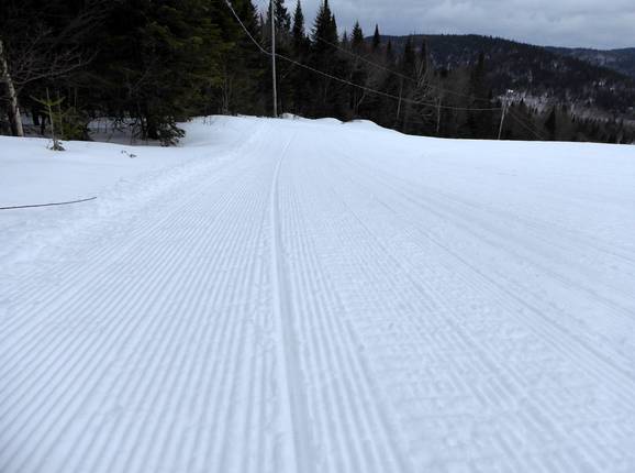 In the Stoneham ski area, almost all slopes are perfectly groomed every day with great attention to detail. Only the cleared forest glades (Gladed Runs) cannot be groomed.