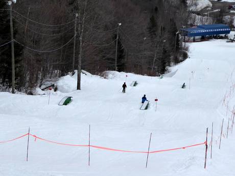 In the Stoneham ski area, there is the large snowpark "Parc XL" with an Olympic halfpipe and two additional snowparks along the La Tempête Express.