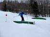 The snowpark is one of the leading parks in the province of Quebec. It is located in the lower area at the L'Alizé quad chairlift. Additionally, there is an Olympic Superpipe. The park is illuminated seven days a week and leaves nothing to be desired. To use the snowpark, you need a paid Access Card, which can only be purchased at the ticket offices in the valley. The Access Card is also valid at the Mont-Sainte-Anne ski area. Children under 16 years of age also require parental consent.