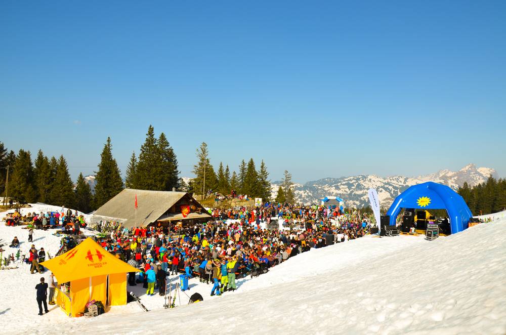 Après-ski fun is the order of the day! The annual Firnschneefäscht will take place on the Stoos on Saturday, March 28, 2026! From 11:00 a.m. you can expect a festival restaurant, shot bar and party sound with live music in the Mauris Hütte at Klingenstock.