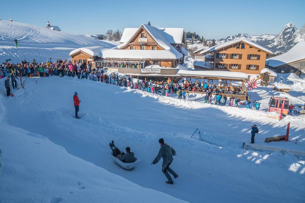 At the legendary Bathtub Race on the Stoos, teams of at least three race down the specially prepared slope in provided bathtubs, all the way to the Balmberg restaurant. This unique sporting event has made headlines worldwide in the past with its quirky images and has been featured in the media from Germany to the UK, China, and even India.