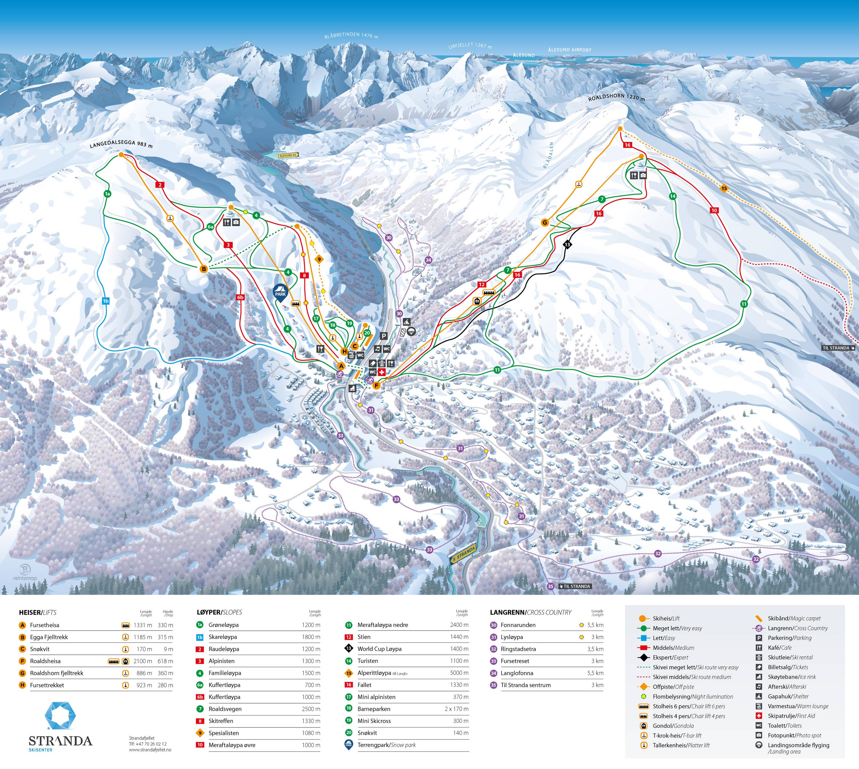 Strandafjellet (0.1 km), Stranda (7 km) Towns/villages at the ski resort
