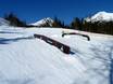 The K2 Snowpark Štrbské Pleso is located slightly above the valley station and offers kickers, rails, and boxes.