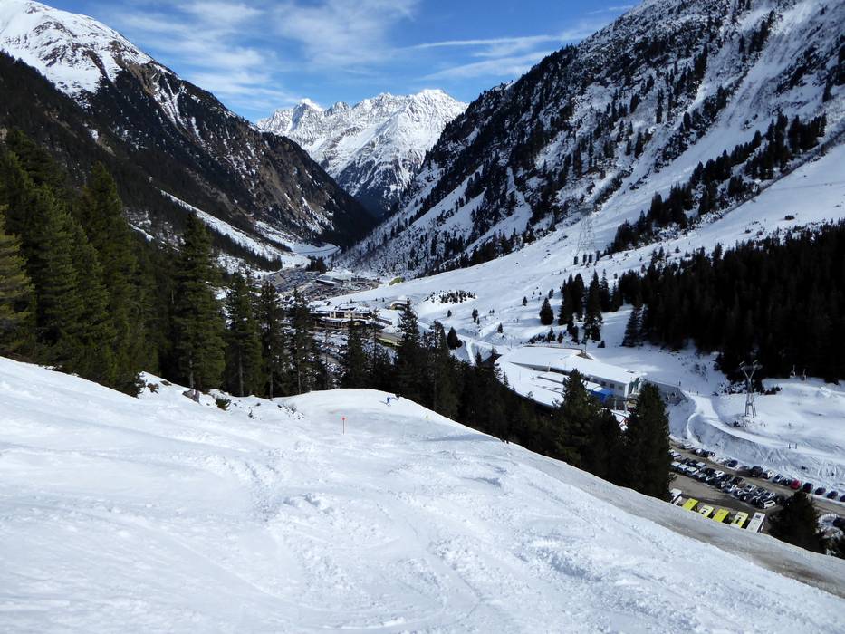 The longest descent starts at the Wildspitz and leads over the Daunferner slope and the Wilde Grub'n ski route down to the Mutterberg valley station. The Wilde Grub'n ski route can be partially covered with artificial snow.