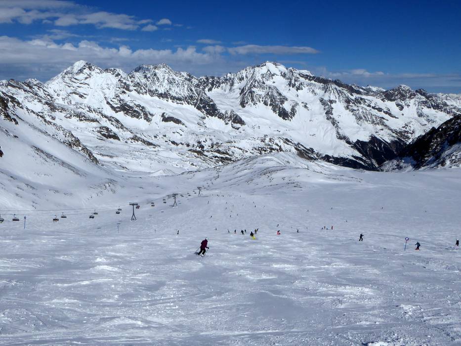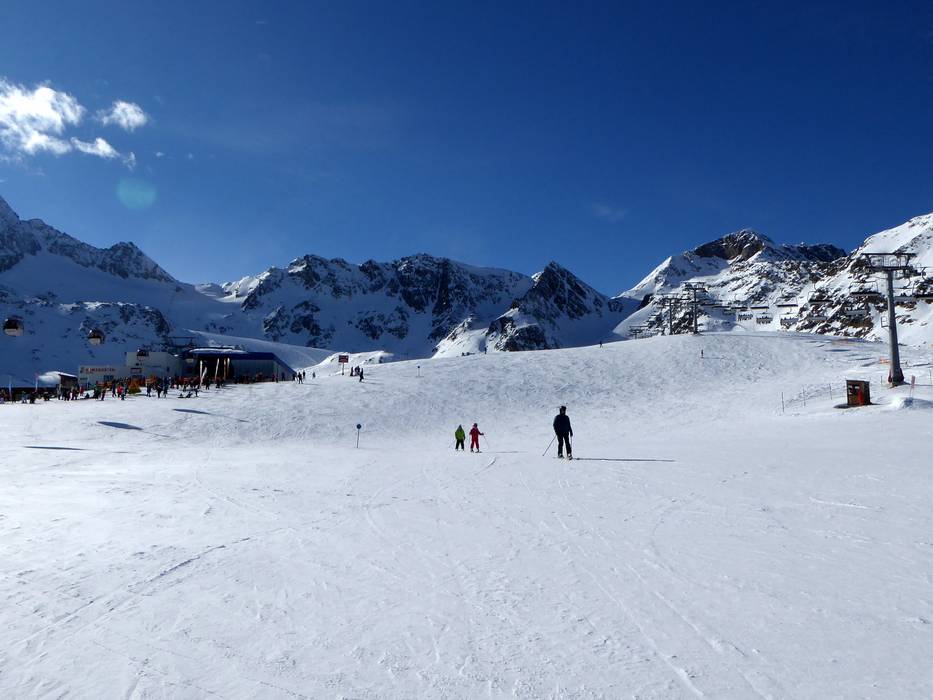 The Stubai Glacier impresses with a large number of wide slopes. Most of the slopes are easy and intermediate. For advanced skiers, there is a black slope, many challenging ski routes, and a large unsecured off-piste area available. The panoramic view over the Alps from the high-altitude slopes is magnificent.