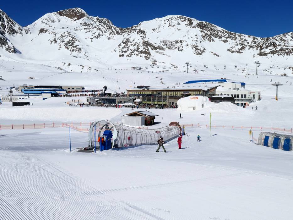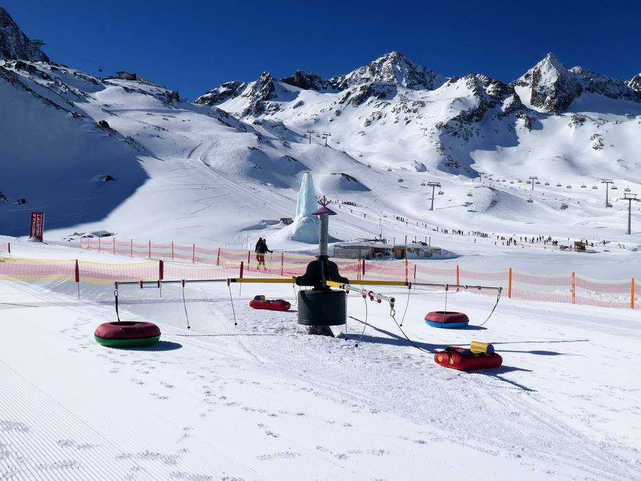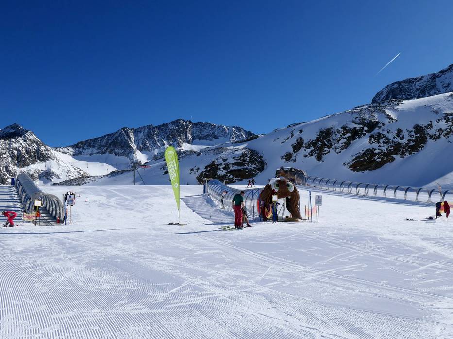 At the Gamsgarten mountain station, the BIG Family Ski-Camp is available, featuring three covered magic carpets and lots of imaginative decorations. The children's area is operated by the Schischule Neustift Stubaier Gletscher. Here, children learn to ski with plenty of fun and receive comprehensive supervision. Lunchtime supervision takes place in the children's restaurant.