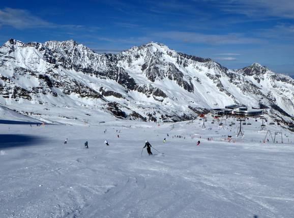The Stubai Glacier impresses with a large number of wide slopes. Most of the slopes are easy and intermediate. For advanced skiers, there is a black slope, many challenging ski routes, and a large unsecured off-piste area available. The panoramic view over the Alps from the high-altitude slopes is magnificent.