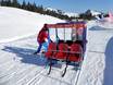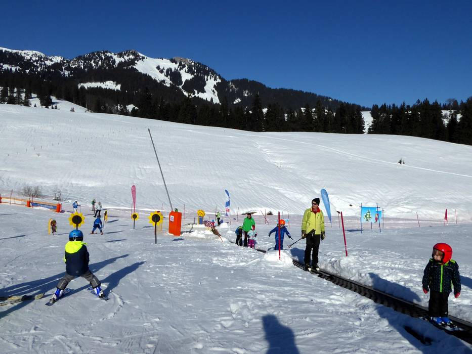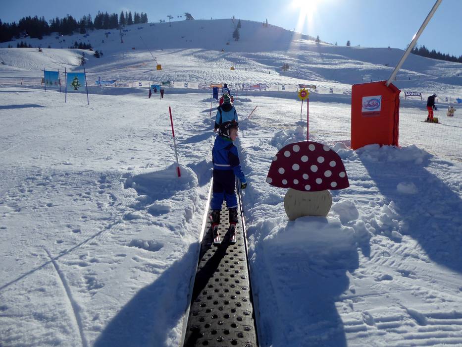 The designated children's adventure area is located at the Waldkopfbahn on the Lower Sudelfeld and can be reached on foot from the Waldkopf-Himmelmoos parking lots. The Snuki Kinderland offers a conveyor belt and a children's lift. Various teaching aids and different terrain features ensure playful learning. No ski pass is required to use the Kinderland. Only a small entrance fee is charged.
