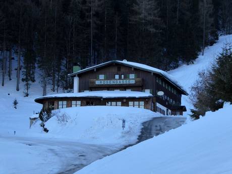 The rustic mountain inn Rosengasse offers traditional Bavarian cuisine. Game dishes, snacks, and homemade cakes are among the items on the menu. On cold days, the tiled stove warms the cozy parlor. The mountain inn Rosengasse also offers rooms and holiday apartments for overnight stays.