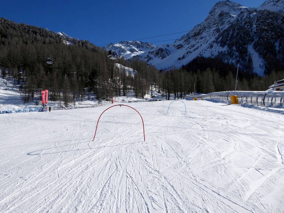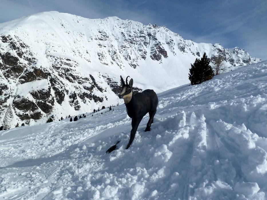 At the mountain station of the Rosimbahn, the Sulden ski school has set up a course. Children can get to know the animals of the Stelvio National Park there.
