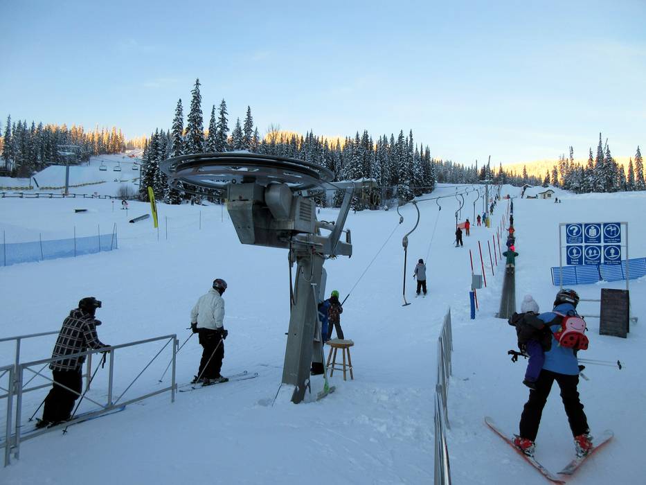 T-bar lift/platter/button lift at the ski resort Sun Peaks