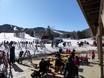 The Sunday River ski resort offers good dining options at the base stations and on North Peak. There are both self-service (food court) and full-service restaurants available. The selection ranges from burgers and burritos to sushi and noodle soups. In addition, there are waffle stands and a food truck. Unfortunately, there are no dining options at the various summits.