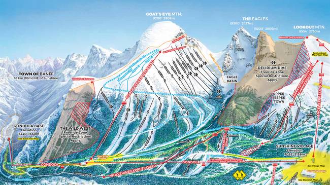Sunshine Village (0 km), Banff (19 km) Towns/villages at the ski resort